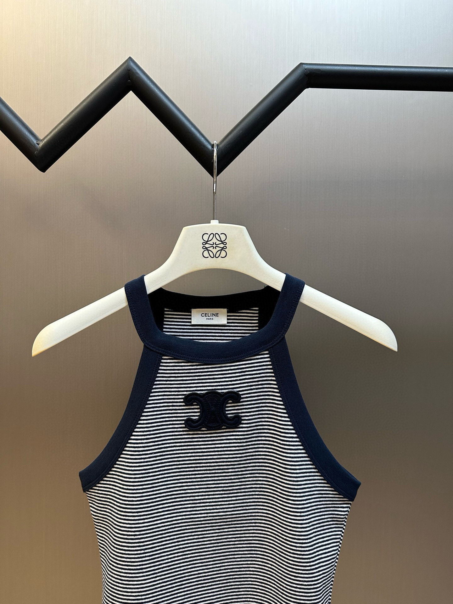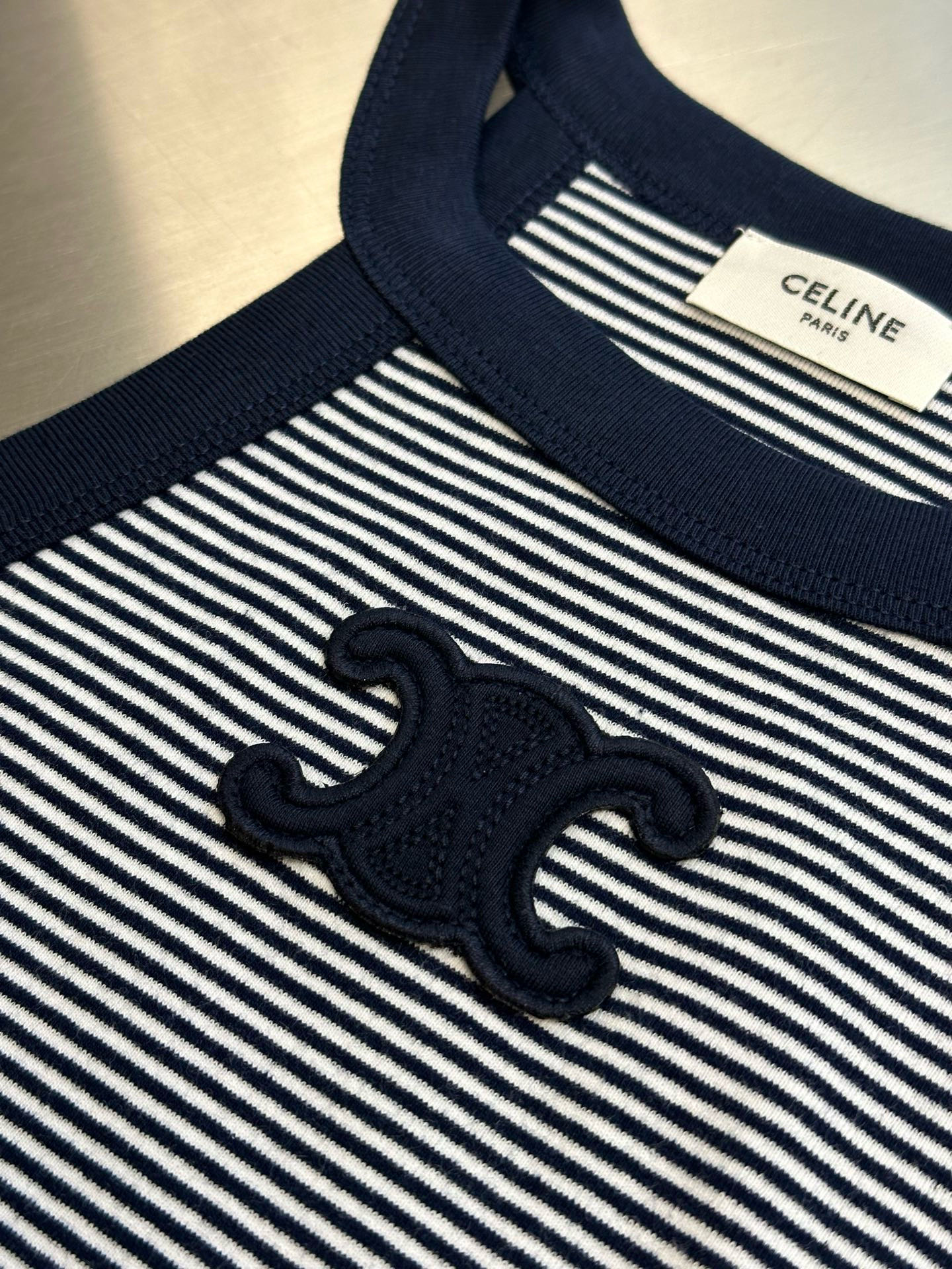 CELINEトリオンフ ストライプ タンクトップ / ジャージー ノースリーブシャツ オフホワイト / ネイビー